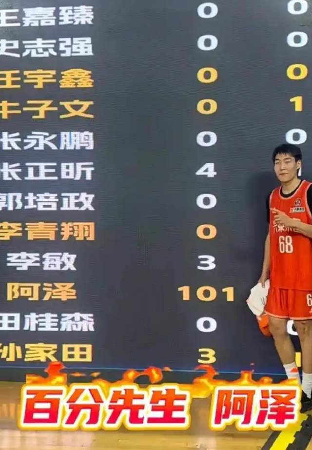 在近日进行的蒙BA小组赛第6轮比赛中,兴泰集团以126-98击败巴彦淖尔队。其中,来自兴泰集团的球员阿泽迎来大爆发,全队拿到的126分,他一人就拿到了101分,真是太猛了,直接刷新了蒙BA单场个人得分记录,前无古人。而阿泽之前是山东男篮选秀选来的球员,可惜,遭到邱彪弃用。如今来看,邱彪真不该放弃他,留着用不香吗?